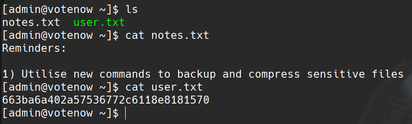 Si ahora vamos a /home/admin podremos ver una flag y una pista: