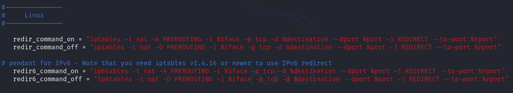 Una vez hecho esto, avanzaremos en el fichero y nos encontraremos con una sección comentada en la cual pone Linux. Ahí, descomentaremos todas las líneas que empiezan por redir de este sección llamada Linux.