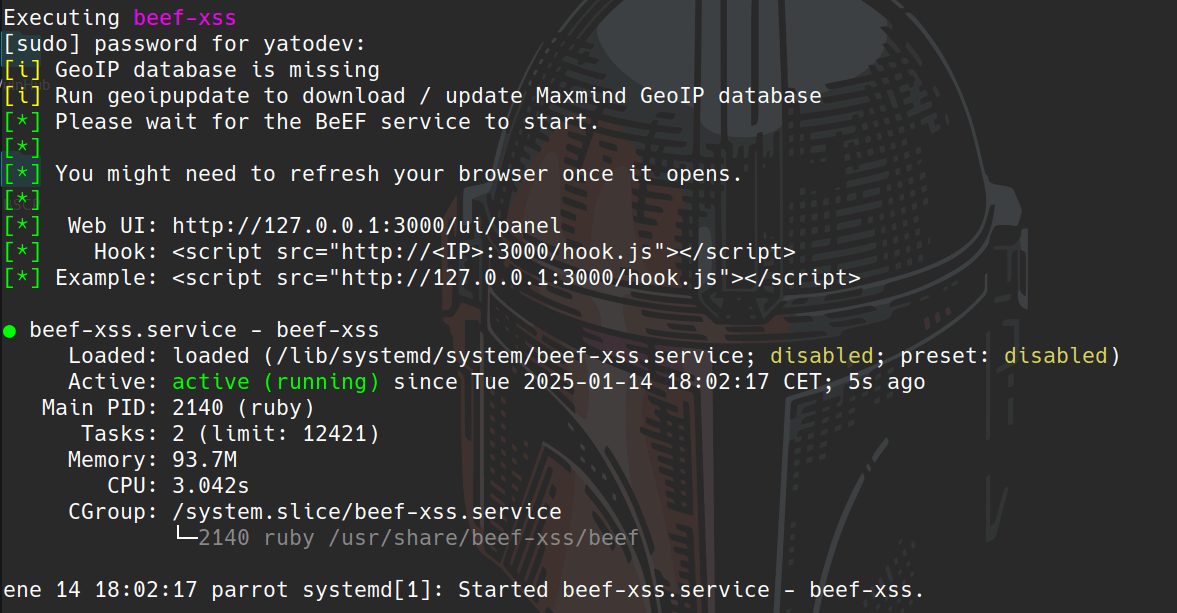 Una vez ejecutamos BeEF, se nos mostrará la siguiente información: