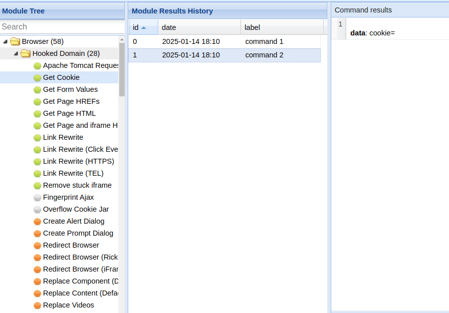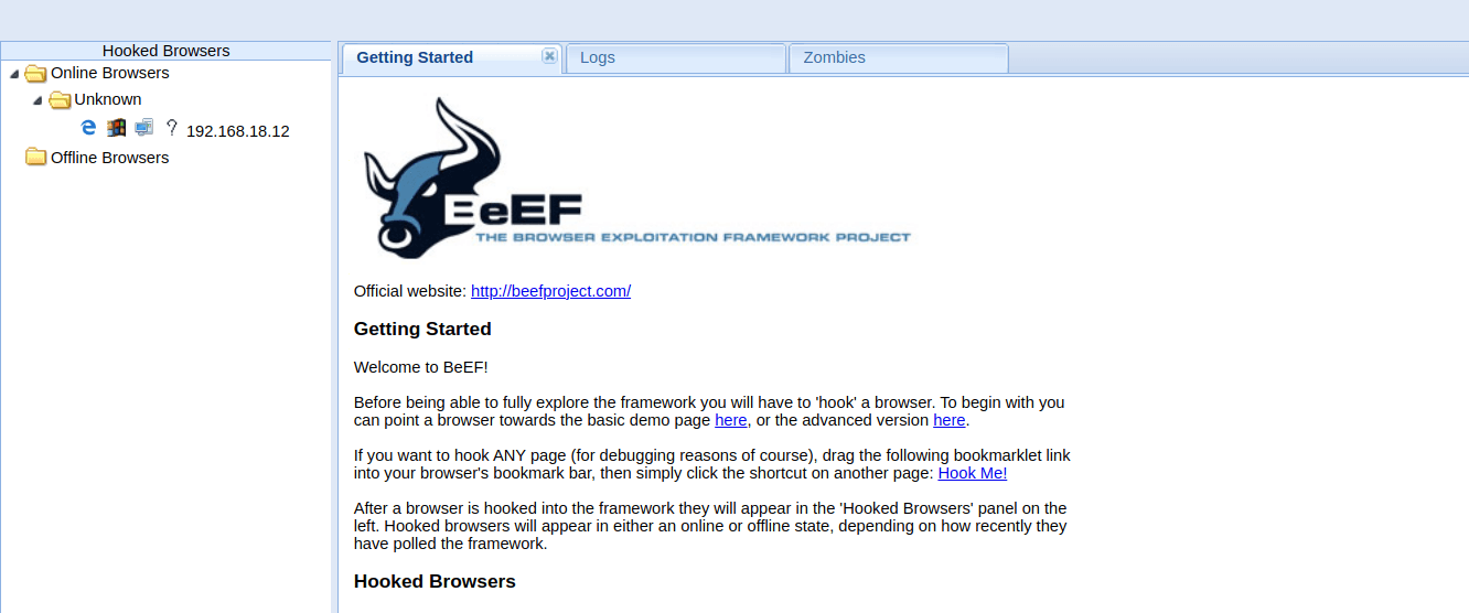 Una vez la víctima a cargado este script podemos acceder a http://localhost:3000/ui/panel y podremos ver lo siguiente: